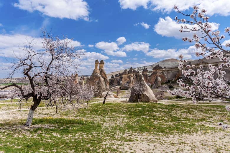 Tras la recogida en tu hotel a la hora indicada, te trasladaremos al aeropuerto de Estambul (Internacional o Sabiha) para tomar uno de los primeros vuelos a Capadocia. El viaje dura aproximadamente 90 minutos. Una vez allí, comenzaremos visitando el Valle de Derbent, conocido por sus curiosas formaciones rocosas y también llamado valle imaginario.
