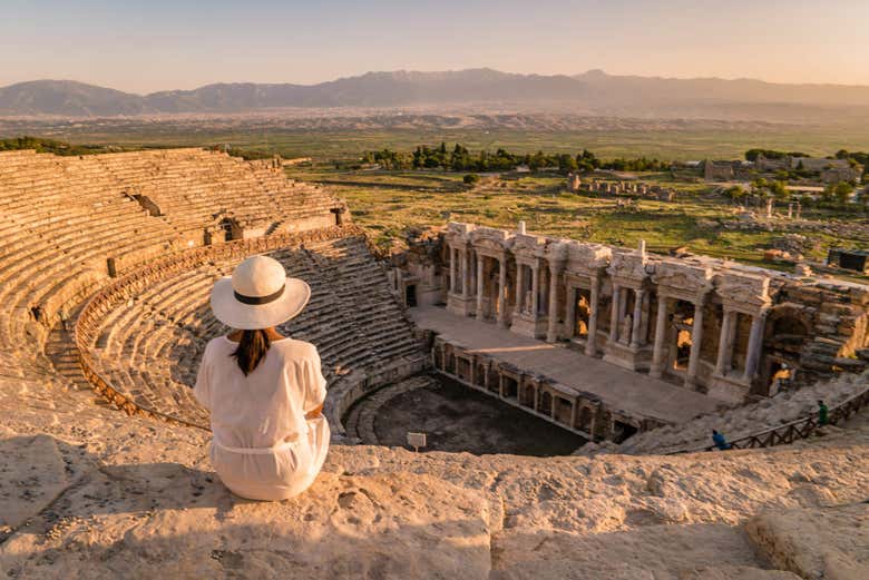 After a 7-hour journey with a stop at the Sultanhan Caravanserai, you will arrive in Pamukkale to visit the Cotton Castle and its thermal pools.