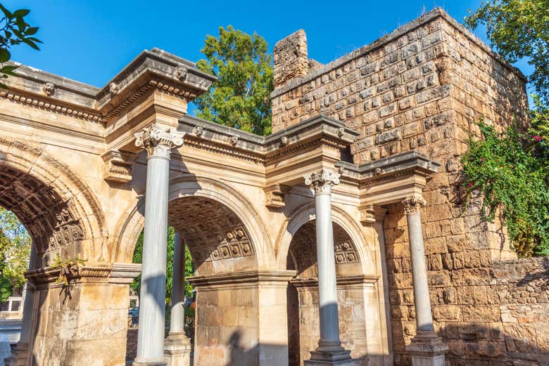 Immerse yourself in the historical and natural richness of Antalya with this comprehensive tour that will take you to explore its most iconic landmarks. We will begin with a visit to the stunning Düden Waterfalls, where you can admire a 15-meter waterfall and discover a natural cave behind the cascade. Then, we will enjoy a relaxing 45-minute boat trip along the coast, offering panoramic views of the Karpuzkaldiran waterfall and the ancient old town.