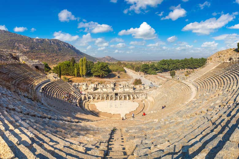 Discover the archaeological jewels of Ephesus on an excursion from Bodrum. Includes pickup, English-speaking guide, buffet lunch, and visits to the Library of Celsus and the Great Theatre.