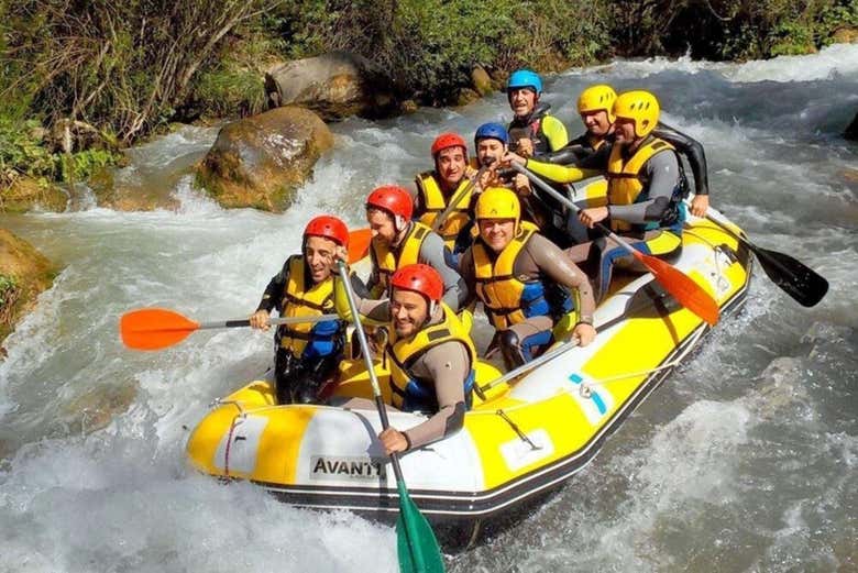 Once on the shore, you will receive the necessary equipment (life jacket and helmet) and basic safety instructions. Then, you will board the rafts to begin the 14-kilometer descent through the river rapids. During the journey, water will splash you as you navigate different sections of the riverbed, surrounded by a landscape of great natural beauty.