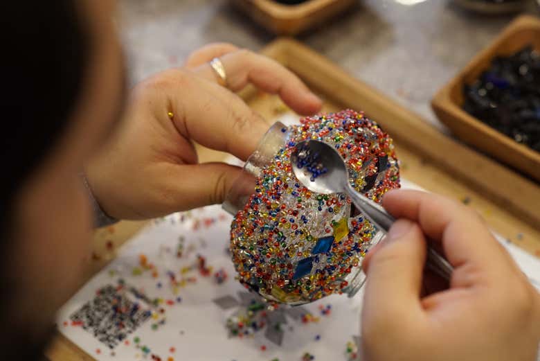 The workshop takes place in a hands-on and creative environment. First, you will receive an introduction to the history of these lamps and their significance in local culture. Then, guided by the artisan, you will begin building your own lamp, personally selecting the colors and mosaic designs. While you wait for the piece to be fully finished, you can enjoy a refreshing drink. At the end, you will return to Taksim Square with your Turkish lamp ready to take home, a unique souvenir of your experience in Istanbul.