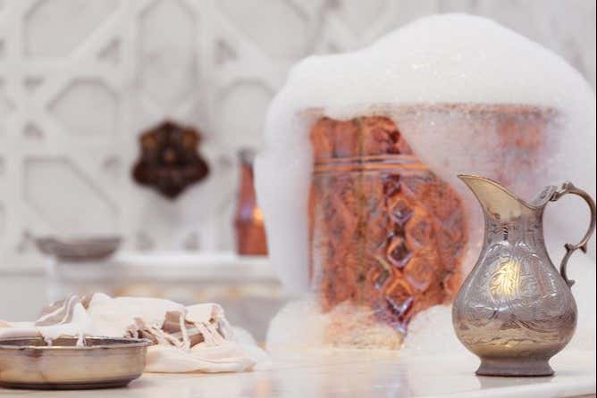Te recogeremos en tu hotel de Capadocia a la hora que elijas y te trasladaremos en minibús al hammam. Una vez allí, accederás a los vestuarios para prepararte y disfrutar de las instalaciones a tu ritmo. Podrás experimentar los vapores y cambios de temperatura del baño turco, relajarte en una piscina de espuma y recibir una sesión de peeling, todo en un ambiente decorado con exquisito estilo árabe. Después de 2 a 3 horas, te llevaremos de vuelta a tu hotel.