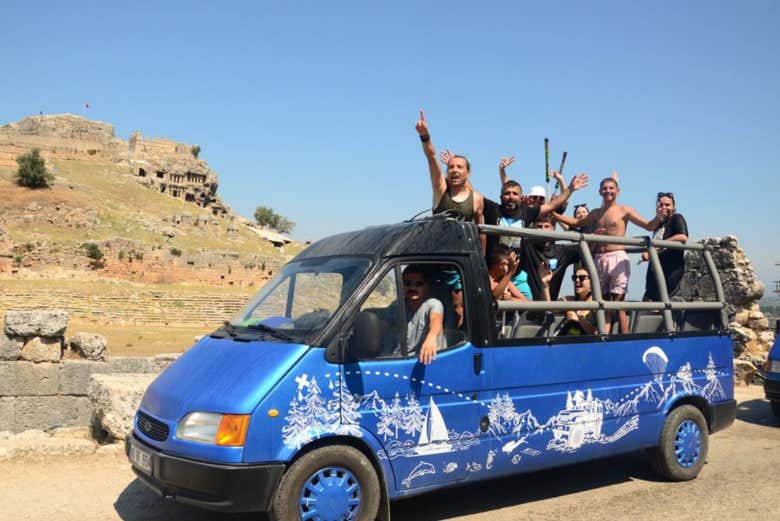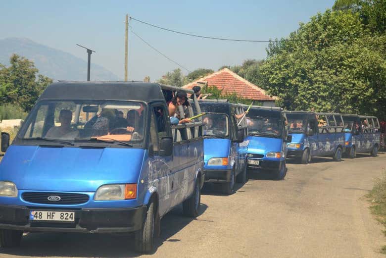 A la hora acordada, pasaremos a recogerte por tu hotel en Fethiye para iniciar un completo tour en minibús descapotable. Comenzaremos visitando la cascada Gizlikent, donde podrás darte un chapuzón refrescante y maravillarte con su belleza natural. Después, repondremos fuerzas con una comida tipo buffet en el restaurante Gizlikent.