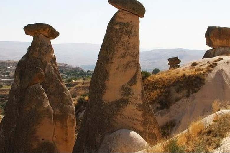 La excursión comienza con la recogida en tu hotel de Antalya a la hora indicada. Durante el trayecto hacia el interior de Turquía, harás una parada para desayunar en los Montes Tauro, a 1825 metros de altitud, donde podrás admirar vistas panorámicas. Luego, visitarás la ciudad subterránea de Saratli, construida por comunidades cristianas, y explorarás lugares históricos como las antiguas ciudades de Kaya y Çam Kulesi, una fortaleza bizantina del siglo XIII y una iglesia dedicada a la Virgen María. Después de un almuerzo por tu cuenta, te adentrarás en el valle de Devrent para ver las famosas chimeneas de hadas, seguido de una visita al pueblo tradicional de Cavusin, la iglesia de San Juan Bautista y un mirador para fotografías. El día termina en el Museo al Aire Libre de Göreme, con sus capillas e iglesias excavadas en la roca, antes de llegar al hotel para cenar y descansar.