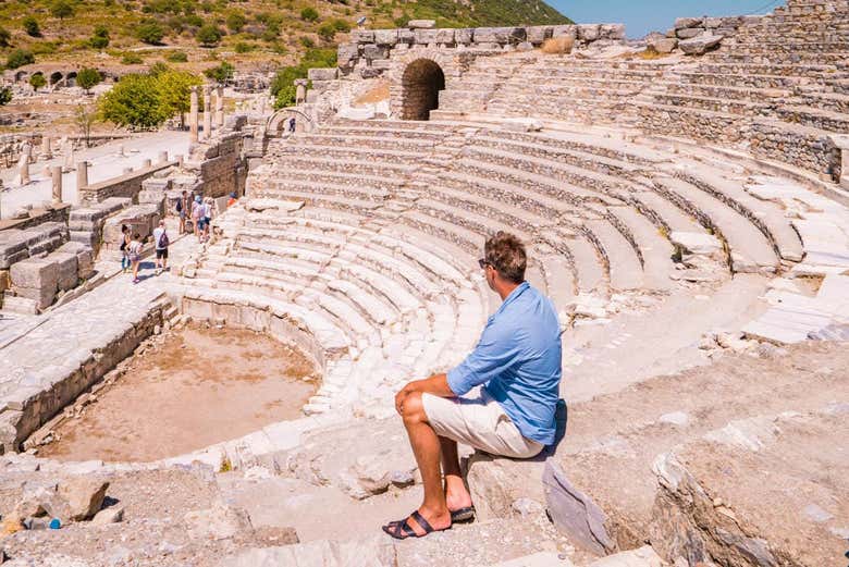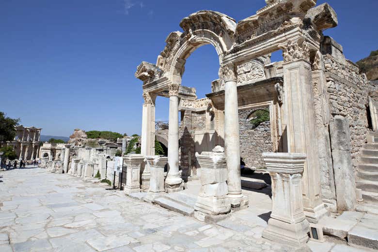 La aventura comienza con la recogida en tu hotel de Kusadasi. Tras un breve trayecto de aproximadamente media hora, llegaremos al majestuoso yacimiento de Éfeso. Aquí, nuestro guía de habla española te conducirá a través de los vestigios mejor conservados de esta antigua metrópolis grecorromana. Visitaremos lugares emblemáticos como la imponente Biblioteca de Celso, el gran Teatro Romano, el Odeón y el Templo de Adriano. También descubriremos curiosidades históricas mientras paseamos por las antiguas letrinas y la Fuente de Trajano.