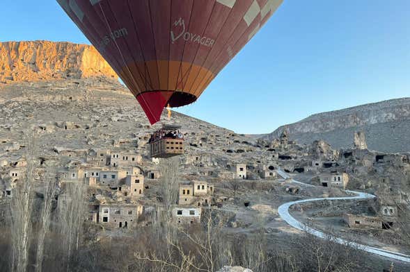 Una vez repasadas las normas de seguridad básicas, subirás a bordo de la cesta para comenzar el ascenso. El paseo en globo tiene una duración aproximada de una hora, durante la cual sobrevolarás este paraje natural perteneciente a la región de Capadocia. Verás amanecer mientras flotas suavemente y divisarás los monumentos históricos y formaciones rocosas que caracterizan esta zona de Turquía.