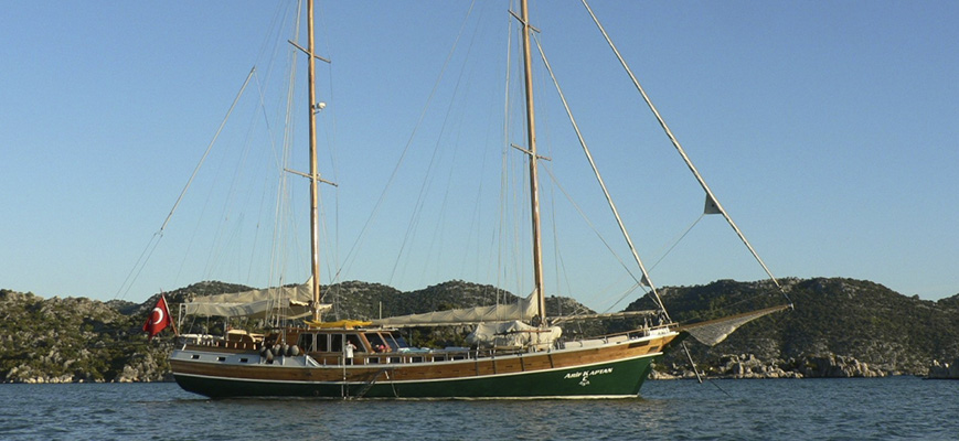Nuestra compañía posee modernas goletas tradicionales turcas de madera, acondicionadas para la navegación en el Mar Mediterráneo, de entre 16 y 36 m. de eslora, con una espaciosa cubierta y dotadas de camarotes para entre 4 y 30 personas, con ducha y WC. Además, disponen de agua corriente caliente y fría en todo el velero, así como un salón interior, cadena de música, nevera, radio VHF, generador de 220 watts, un bote motorizado, y un mínimo de tres miembros como tripulación