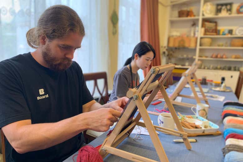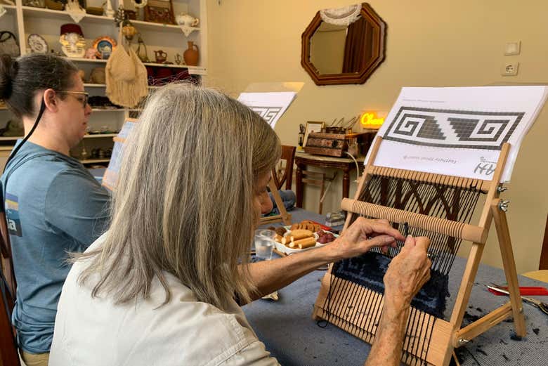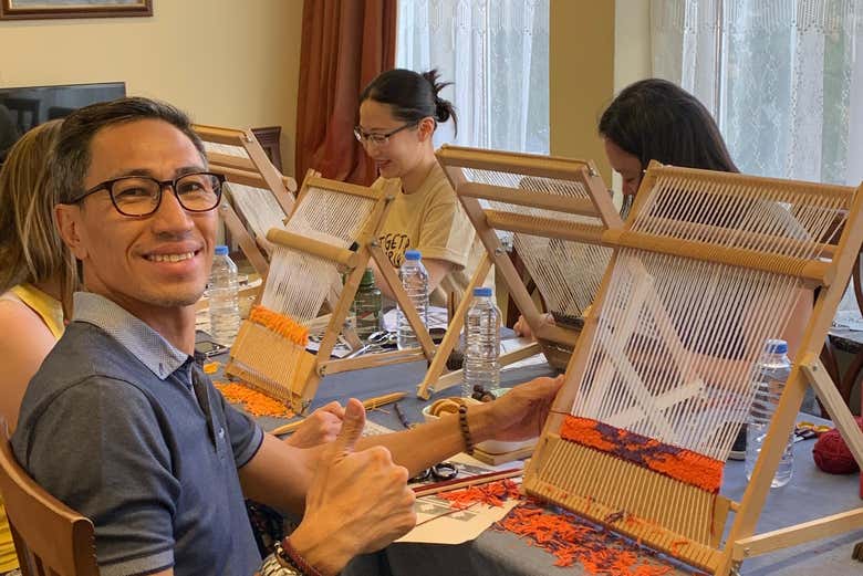 Luego, comenzarás la sesión práctica de tejido. Con la ayuda de un artesano, aprenderás la auténtica técnica del doble nudo, utilizada en la fabricación de alfombras. Te sentarás en tu propio telar individual para empezar a tejer una mini alfombra personalizada, empleando hilos de lana de colores vibrantes.