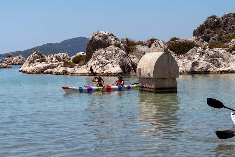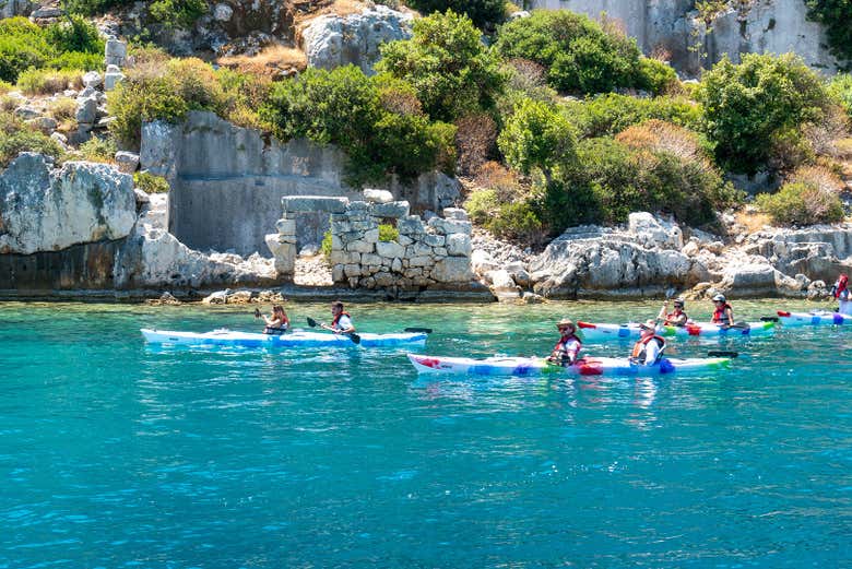 El punto de encuentro es en Kaleüçağız Köyü Yolu, número 29. Tras una breve introducción sobre el manejo del kayak y la colocación de chalecos salvavidas, comenzarás a remar desde la playa de Üçağiz en dirección suroeste hacia la isla de Kekova. La primera parada será en la bahía de Tersane, donde podrás refrescarte con un chapuzón en sus aguas turquesas.