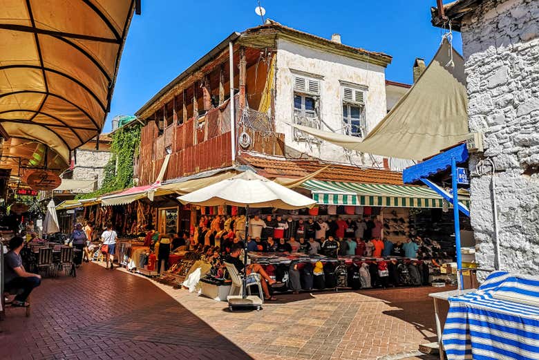 A las 9:00 horas, pasaremos a recogeros por vuestro hotel y nos dirigiremos hacia el mercado de Fethiye, el más grande de la provincia de Muğla. Aquí, disfrutaréis de dos horas de tiempo libre para explorar puestos de especias, frutas, verduras, dulces típicos y artesanías, ideal para mezclarse con la gente local y adquirir souvenirs al mejor precio. Después, realizaremos un trayecto de media hora hasta el pueblo abandonado de Kayaköy, donde pasearemos entre sus edificios en ruinas mientras os contamos su fascinante historia, desde sus orígenes en la Antigua Grecia hasta sucesos más recientes como incendios, terremotos y conflictos. El tour finaliza entre las 17:00 y las 18:00 horas, con el traslado de regreso a vuestro hotel.